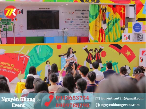 📅 Trong khuôn khổ các hoạt động kỷ niệm 50 năm thiết lập quan hệ ngoại giao Việt Nam – CHLB Đức, sáng ngày 03.10, “Chuyến xe Hướng nghiệp Đức 2025” đã dừng chân tại Trường ĐH KHXH&NV, ĐHQG-HCM, mang đến cho sinh viên cơ hội tìm hiểu về học bổng, đào tạo nghề và việc làm tại Đức,. Nguyên Khang Event hân hạnh là đơn vị thi công ,lắp đặt cung cấp thiết bị cho sự kiện lần này. Với đội ngũ nhân viên lành nghề , tận tâm, tận tình đến từ team Nguyên Khang đã góp phần làm cho chương trình diễn ra thành công tốt đẹp.