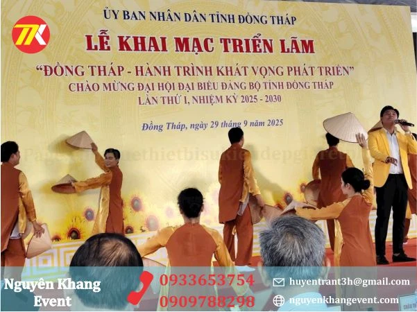 Ngày 29/9/2025,chương trình triển lãm “Đồng Tháp – Hành trình khát vọng phát triển” khai mạc tại Quảng trường Hùng Vương, chào mừng ĐH Đại biểu Đảng bộ tỉnh Đồng Tháp lần thứ Nhất. Văn nghệ sĩ hội viên Hội Liên hiệp VHNT tỉnh Đồng Tháp có một số tác phẩm ảnh nghệ thuật và tranh tham gia triển lãm đã diễn ra thành công tốt đẹp. Nguyên Khang Event hân hạnh là đơn vị thi công ,lắp đặt cung cấp toàn bộ thiết bị cho sự kiện lần này. Với đội ngũ nhân viên lành nghề , tận tâm, tận tình đến từ Nguyên Khang đã góp phần làm cho chương trình diễn ra thành công tốt đẹp.